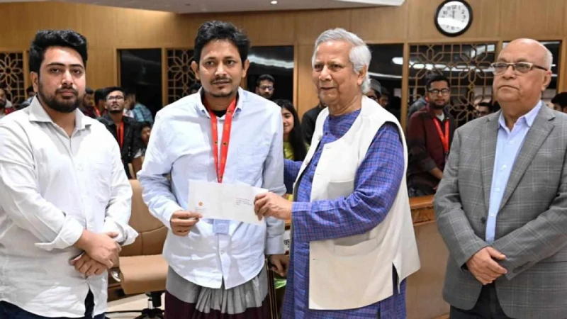 শহিদ পরিবার ও আহতের উদ্দেশে ড. মুহাম্মদ ইউনূস বলেন, ‘আজকে থেকে আপনারা আনুষ্ঠানিকভাবে সরকারের অংশ হলেন। এটা হলো প্রাতিষ্ঠানিক স্বীকৃতি। এর বাইরেও আপনাদের দায়িত্ব সমাজের সবাইকে গ্রহণ করতে হবে।’