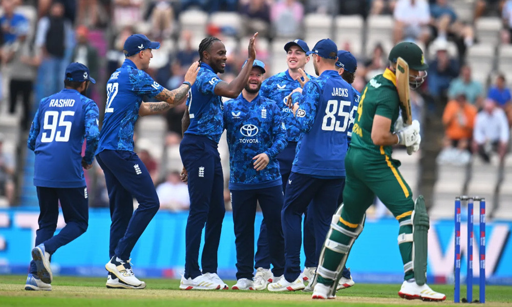 ইংল্যান্ডের দুর্দান্ত ব্যাটিং ও জফরা আর্চারের বিধ্বংসী বোলিংয়ে ওয়ানডে ক্রিকেট ইতিহাসের সবচেয়ে বড় ব্যবধানে পরাজিত হলো দক্ষিণ আফ্রিকা। রবিবার সাউদ্যাম্পটনে সিরিজের তৃতীয় ও শেষ ওয়ানডেতে স্বাগতিক ইংল্যান্ড ৩৪২ রানে জয় তুলে নেয়।