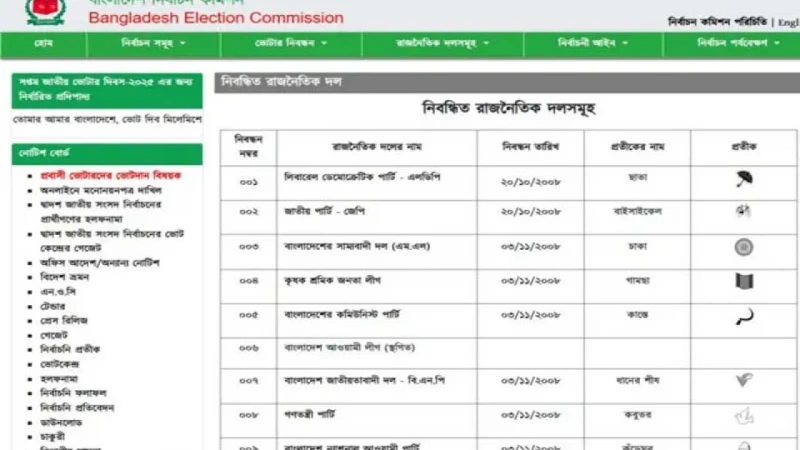 বাংলাদেশ নির্বাচন কমিশনের (ইসি) ওয়েবসাইট থেকে নিবন্ধন স্থগিত হওয়া বাংলাদেশ আওয়ামী লীগের দলীয় প্রতীক ‘নৌকা’ সরিয়ে ফেলা হয়েছে।