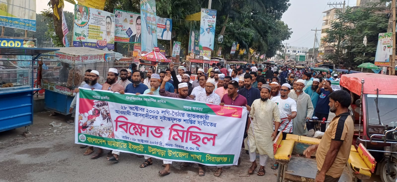 ২০০৬ সালের ২৮ অক্টোবর রাজধানী ঢাকায় বাংলাদেশ জামায়াতে ইসলামীর সমাবেশে সংঘটিত হত্যাকাণ্ডের বিচার দাবিতে উল্লাপাড়ায় বিক্ষোভ মিছিল ও সমাবেশ অনুষ্ঠিত হয়েছে।