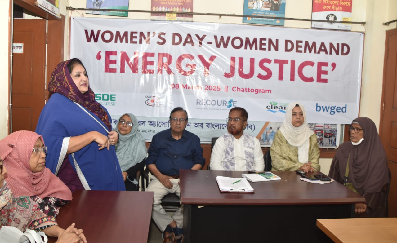 ৮ মার্চ চট্টগ্রামে আর্ন্তজাতিক নারী দিবস ২০২৫ উপলক্ষে “বিদ্যুৎ ও জ্বালানি খাতে নারীর ক্ষমতায়নঃ টেকসই উন্নয়নে জ্বালানি নিরাপত্তা ও অধিকার নিশ্চিত কর” শীর্ষক আলোচনা সভা অনুষ্ঠিত হয়। সভায় বিদ্যুৎ ও জ্বালানি খাতে নারীর অংশগ্রহণ, ক্ষমতায়ন, জ্বালানি অধিকার নিশ্চিতকরণ এবং সিদ্ধান্ত গ্রহন প্রক্রিয়ায় নারীর অংশগ্রহন বাড়ানোর দাবি জানানো হয়েছে। আইএসডিই বাংলাদেশ, ক্লিন (কোস্টাল লাইভলিহুড এন্ড এনভায়রনমেন্টাল একশন নেটওয়ার্ক) ও বিডাব্লিউজিইডি (বাংলাদেশ ওয়ার্কিং গ্রুপ অন ইকোলজি এন্ড ডেভেলপমেন্ট), সিএসডিএফ এর যৌথ উদ্যোগে আয়োজিত এ কর্মসূচির মূল লক্ষ্য ছিল সারাদেশে শতভাগ নবায়নযোগ্য জ্বালানি নিশ্চিত করে নারীদের জ্বালানি নিরাপত্তা নিশ্চিত করা। প্রচারাভিযানে অংশগ্রহণকারীরা নবায়নযোগ্য জ্বালানির প্রসারের প্রয়োজনীয়তা ও বিদ্যুৎ খাতে নারীর অন্তর্ভুক্তি বিষয়ে সচেতনতামূলক বার্তা তুলে ধরেন। তারা জোর দিয়ে বলেন, টেকসই উন্নয়ন নিশ্চিত করতে হলে জ্বালানি খাতে নারীর সিদ্ধান্ত গ্রহণের সুযোগ বৃদ্ধি করতে হবে এবং সকল স্তরে জ্বালানির ন্যায়সঙ্গত ব্যবহার নিশ্চিত করা ও নবায়নযোগ্য জ্বালানির প্রসাারের প্রয়োজনীয়তা ও বিদ্যুৎ খাতে নারীর অন্তর্ভূক্তির বিষয়ে গুরুত্বআরোপ করেন।