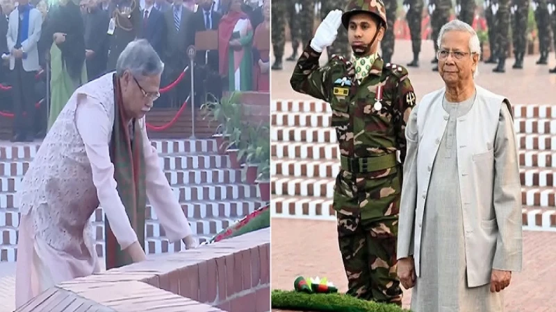 মহান বিজয় দিবস উপলক্ষে সাভারে জাতীয় স্মৃতিসৌধে পুষ্পস্তবক অর্পণের মাধ্যমে ১৯৭১ সালের মহান মুক্তিযুদ্ধের বীর শহীদদের প্রতি গভীর শ্রদ্ধা জানিয়েছেন রাষ্ট্রপতি মো. সাহাবুদ্দিন ও প্রধান উপদেষ্টা ড. মুহাম্মদ ইউনূস।