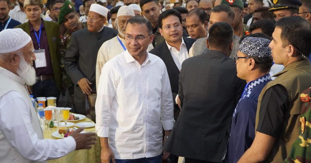 সত্য সমাচার ডিজিটাল: রাজধানীর চীন মৈত্রী সম্মেলন কেন্দ্রে বাংলাদেশ জামায়াতে ইসলামী আয়োজিত ইফতার মাহফিলে অংশ নিয়েছেন প্রধানমন্ত্রী তারেক রহমান।