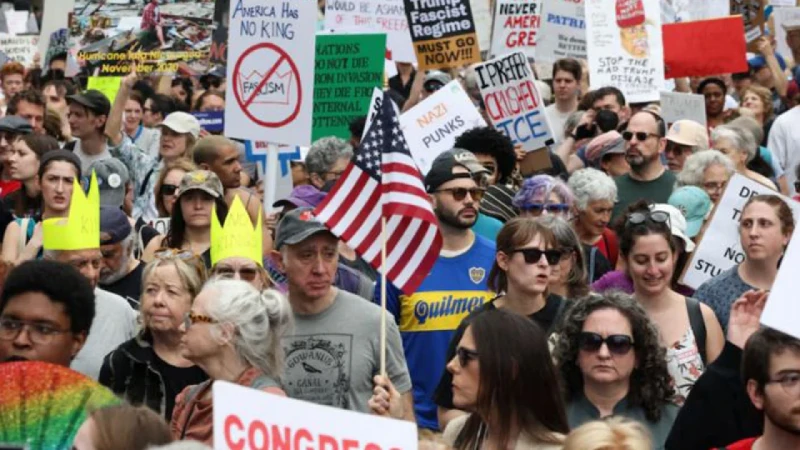 দ্বিতীয়বারের মতো নির্বাচিত মার্কিন প্রেসিডেন্ট ডোনাল্ড ট্রাম্পের বিরুদ্ধে যুক্তরাষ্ট্রজুড়ে আবারও হাজার হাজার মানুষ রাস্তায় নেমেছেন। ট্রাম্প প্রশাসনের অভিবাসীদের বিতাড়ন, সরকারি চাকরি থেকে ছাঁটাই, গাজা ও ইউক্রেন নীতির বিরুদ্ধে বিক্ষোভে অংশ নেন তারা।