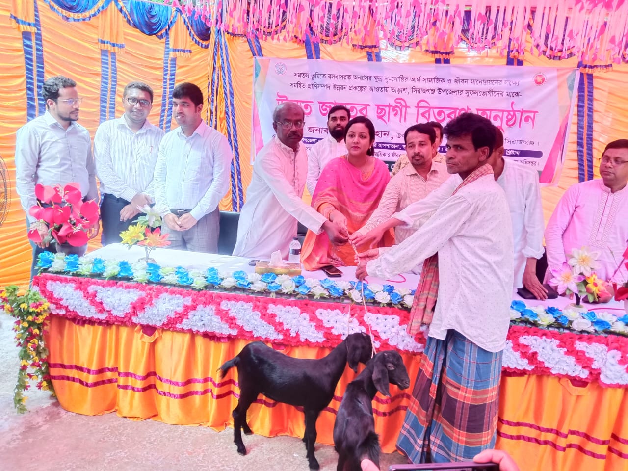 তাড়াশ উপজেলা প্রাণিসম্পদ কর্তৃক আয়োজিত ৩০/০৯/২০২৫ ইং তারিখে উন্নত জাতের ছাগী বিতরন অনুষ্ঠান। উক্ত অনুষ্ঠানে সমতল ভূমিতে বসবাসরত অনগ্রসর ক্ষুদ্র নৃগোষ্ঠী আর্থ সামাজিক ও জীবন মানোন্নয়নের লক্ষে উন্নত জাতের ছাগী বিতরণ করা হয়। উক্ত অনুষ্ঠানে সভাপতিত্ব করেন তাড়াশ উপজেলা নির্বাহী অফিসার জনাব নুসরাত জাহান।