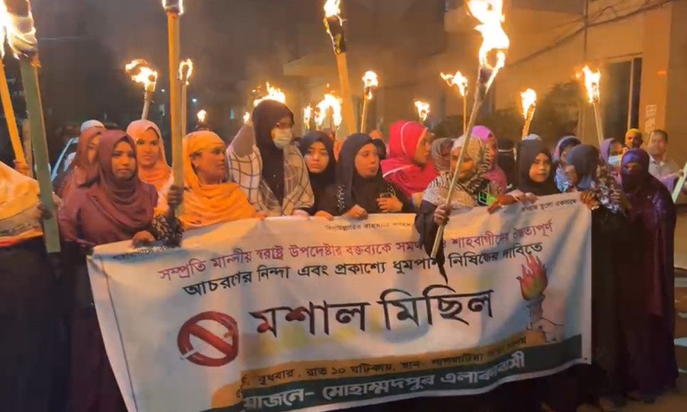 তাদের কারণে শিশুরাও বিপথগামী হচ্ছে। এর প্রতিবাদে এই মশাল মিছিল বের করা হয়েছে।