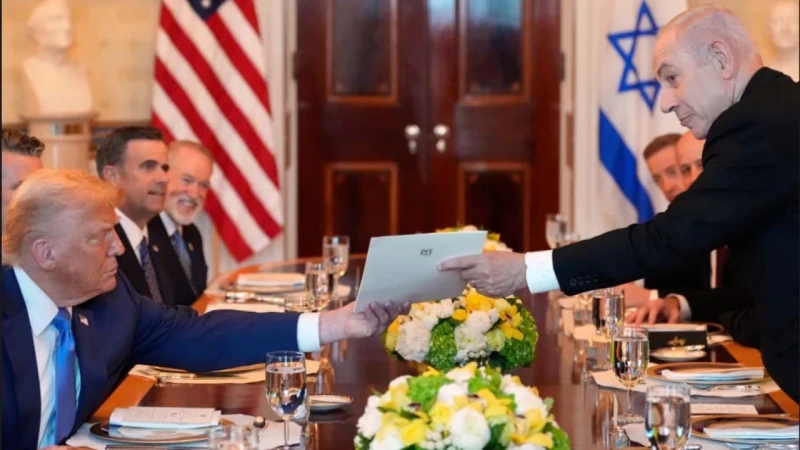 এর আগে নৈশভোজের আগে সাংবাদিকদের কাছে মার্কিন প্রেসিডেন্ট ডোনাল্ড ট্রাম্পের উদ্বোধনী বক্তব্যের পর, নেতানিয়াহু ট্রাম্পের নেতৃত্বের প্রশংসা করে বলেন, এটি ইসরায়েলি, ইহুদি জনগণ এবং বিশ্বব্যাপী আরও অনেকের দ্বারা প্রশংসিত।