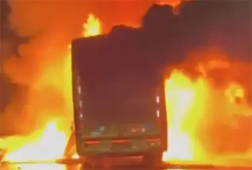 ভারতে মোটরসাইকেলের সঙ্গে সংঘর্ষে যাত্রীবাহী বাসে আগুন, নিহত অন্তত ২০