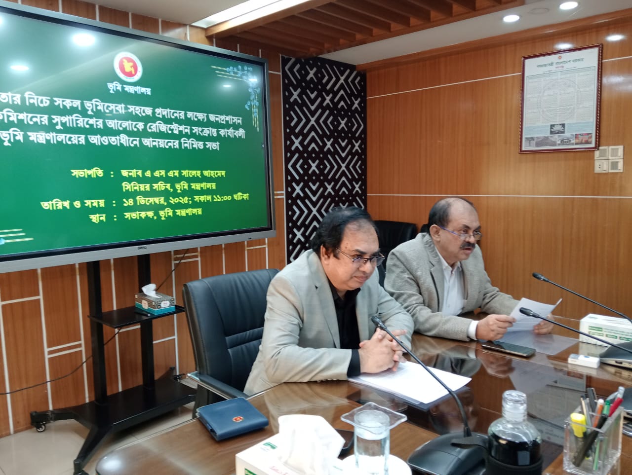 ভুমি মন্ত্রণালয়ের সিনিয়র সচিব এএসএম সালেহ আহমেদ এর সভাপতিত্বে সভায় ভূমি সংস্কার বোর্ডের চেয়ারম্যান (সচিব) এজেএম সালাউদ্দিন নাগরী,ভূমি আপিল বোর্ডের চেয়ারম্যান(গ্রেড-১) ড.মো:মাহমুদ হাসানসহ মন্ত্রণালয়য়ে অতিরিক্ত সচিববৃন্দ এবং বিভিন্ন মন্ত্রণালয়ের প্রতিনিধিগণ উপস্থিত ছিলেন।