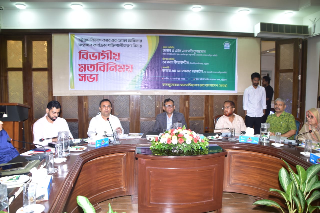 ক্যাব কেন্দ্রিয় কমিটির ভাইস প্রেসিডেন্ট এস এম নাজের হোসাইনের সভাপতিত্বে মতবিনিময় সভায় প্রধান অতিথি ছিলেন শ্রম ও কর্মসংস্থান মন্ত্রণালয়ের সাবেক সচিব এ এইচ এম সফিকুজ্জমান,বিশেষ অতিথি ছিলেন চট্টগ্রাম বিভাগের বিভাগীয় কমিশনার ডঃ মোঃ জিয়াউদ্দীন, চট্টগ্রামের ভারপ্রাপ্ত জেলা প্রশাসক কামরুজ্জমান। আলোচনায় অংশনেন জাতীয় ভোক্তা অধিকার সংরক্ষন অধিদপ্তরের বিভাগীয় উপ-পরিচালক ফয়েজউল্যাহ, জেলা নিরাপদ খাদ্য অফিসার ফারহান ইসলাম, বিএসটিআই এর সহকারী পরিচালক রিগ্যান বৈদ্য, কলকারখানা  পরিদর্শন অধিদপ্তরের উপ-মহাপরিদর্শক মাহবুবুল হাসান। ক্যাব বিভাগীয় সাধারন সম্পাদক কাজী ইকবাল বাহার ছাবেরীর সঞ্চালনায় আলোচনায় অংশ নেন,ক্যাব নোয়াখালীর সাধারন সম্পাদক রুমানা ইসলাম, ক্যাব কুমিল্লার সাধারন সম্পাদক কাজী মাসুদ, ক্যাব বিবাড়ীয়ার সাধারন সম্পাদক সৈয়দ শাহীন মুহাম্মদ, ক্যাব রাঙ্গামাটির সাধারন সম্পাদক রানা মহসিন,যুব ক্যাব চট্টগ্রাম মহানগরের সভাপতি আবু হানিফ নোমান, চট্টগ্রাম বিশ্ববিদ্যালয় সভাপতি রাব্বি তৌহিদ, কর্নফুলী উপজেলা সাধারন সম্পাদক সিদরাতুল মনুতাহা, ক্যাব চট্টগ্রাম মহনগরের সভাপতি জেসমিন সুলতানা পারু, যুগ্ন সম্পাদক মোঃ সেলিম জাহাঙ্গীর, বনফুলের জিএম আনামুল হক, ড্রিংকিং ওয়াটার ম্যানুফেকচার অ্যাসোসিয়েশনের সভাপতি ফয়সাল আবদুল্লাহ আদনান, সমাজ কর্মী জুলকার নায়েন ও যুব ক্যাব সদস্য নাফিসা নবী প্রমুখ।
