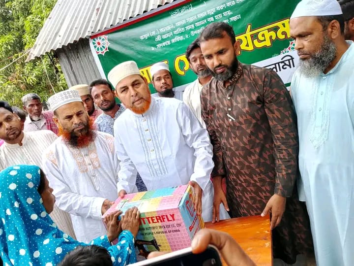 বাংলাদেশ জামায়াতে ইসলামী সলঙ্গা থানার উদ্যোগে সমাজসেবা কার্যক্রমের অংশ হিসেবে রবিবার (২০ এপ্রিল) সকালে জগজীবনপুর গ্রামের অসহায় বয়োবৃদ্ধ ছাবেদ আলী নাপিতকে ৪টি ছাগল, সেলাই মেশিন, ও নগদ ১৫ হাজার টাকা প্রদান করা হয়। প্রধান অতিথি হিসেবে উপস্থিত ছিলেন বাংলাদেশ জামায়াতে ইসলামীর সহকারী সেক্রেটারি জেনারেল মাওলানা রফিকুল ইসলাম খান।