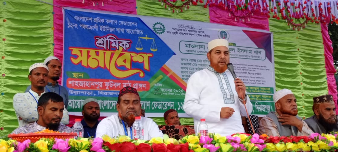 রবিবার (১৬ নভেম্বর) বিকেলে সিরাজগঞ্জের উল্লাপাড়া উপজেলার পঞ্চক্রোশী ইউনিয়নের শাজাহানপুর ফুটবল মাঠে বাংলাদেশ শ্রমিক কল্যাণ ফেডারেশন আয়োজিত শ্রমিক সমাবেশে প্রধান অতিথির বক্তব্যে তিনি এসব কথা বলেন।