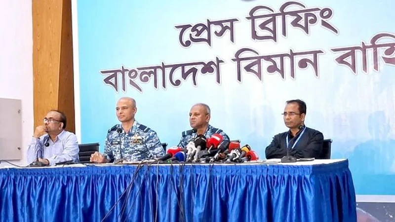 সংবাদ সম্মেলনে লিখিত বক্তব্যে বিমানবাহিনীর জরুরি সমন্বয়ক কেন্দ্রের এয়ার কমডোর মো. মিজানুর রহমান বলেন, ‘এই দুর্ঘটনায় নিহত ও আহতদের পরিবারের পাশে থাকবে বিমানবাহিনী। প্রয়োজন অনুযায়ী সর্বোচ্চ সহায়তা দেওয়া হবে। এই মর্মান্তিক ঘটনায় আমরা বাকরুদ্ধ ও গভীরভাবে শোকাহত। উদ্ধার অভিযানে অংশ নেওয়া সব আইনশৃঙ্খলা বাহিনীকে আন্তরিক ধন্যবাদ জানাই।’