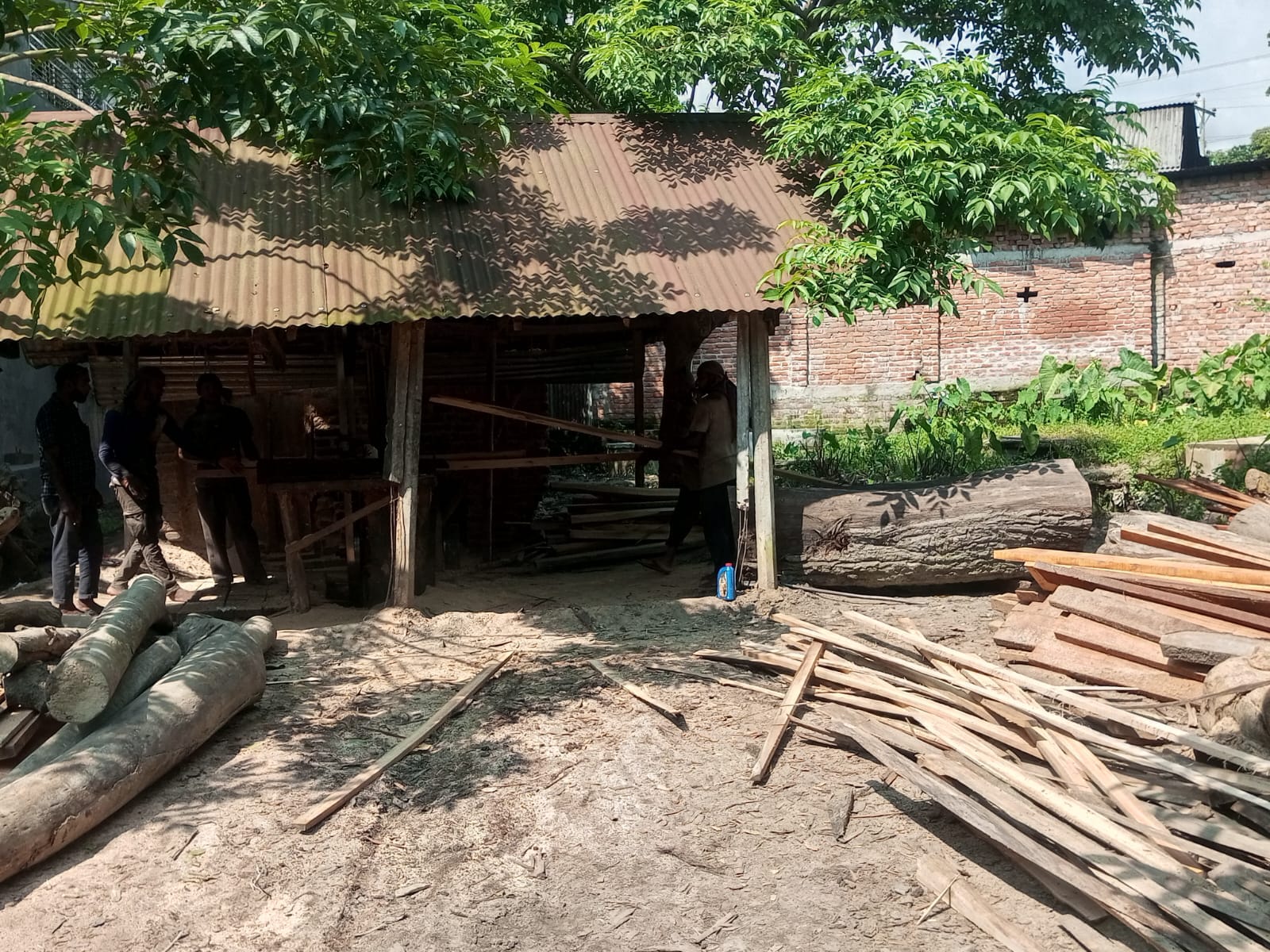 রাণীশংকৈলে ইউএনও’র নির্দেশে জব্দকৃত শালগাছ স’মিলে কর্তন