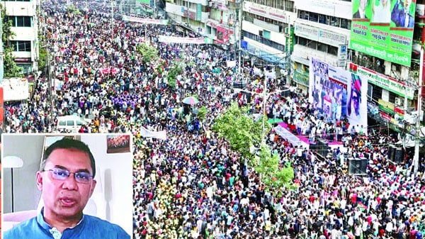 তিনি আরও বলেন, গণ অভ্যুত্থান কিংবা সংস্কার কার্যক্রম নিয়ে রাজনীতির মাঠে নানারকম কথা হচ্ছে। গণতান্ত্রিক রাজনীতিতে এটি একটি স্বাভাবিক এবং গ্রহণযোগ্য রীতি। প্রত্যেকেই তাদের নিজ নিজ দৃষ্টিভঙ্গি প্রকাশ করবেন, এটিই স্বাভাবিক। এ নিয়ে বিচলিত হওয়ার কিছু নেই। একজন রাজনৈতিককর্মী হিসেবে আমি বিশ্বাস করি, ফৌজদারি অপরাধের বিচার যেমন বিচারিক আদালতে হয়, ঠিক তেমনি রাজনৈতিক কর্মকা কিংবা রাজনৈতিক আচরণের বিচার হয় জনগণের আদালতে। আমি আগেও বলেছি, ক্ষমতার পরিবর্তন মানে শুধুই রাষ্ট্র ক্ষমতার হাত বদল নয়। ক্ষমতার পরিবর্তন মানে রাষ্ট্র এবং রাজনীতির গুণগত পরিবর্তন। তাই প্রতিটি রাজনৈতিক নেতা-কর্মীর মনে রাখা প্রয়োজন রাজনীতির গুণগত পরিবর্তনের জন্য রাজনৈতিক দলের নেতা-কর্মীদের আচার-আচরণেও গুণগত পরিবর্তন জরুরি। সুতরাং, আমার আহ্বান থাকবে- কোনো প্রলোভন কিংবা উসকানিতে বিভ্রান্ত না হয়ে জ্ঞানভিত্তিক রাষ্ট্র এবং সমাজের নেতৃত্বদানের জন্য নিজেদের প্রস্তুত রাখুন। তিনি বলেন, হাজারো শহীদের রক্তস্নাত এই রাজপথে আজ আপনাদের এই স্বতঃস্ফূর্ত উপস্থিতির অর্থ হলো ছাত্র-জনতার কাঙ্ক্ষিত বৈষম্যহীন বাংলাদেশ গড়ার এই যাত্রাপথে বাংলাদেশের পক্ষের শক্তিকে হয়তো আরও ত্যাগ স্বীকার করতে হবে। আরও কিছু পথ পাড়ি দিতে হবে। তবে সেই পথ সন্ত্রাস-সংঘর্ষ-প্রতিশোধ কিংবা প্রতিহিংসার নয়। সেই পথ হবে ধৈর্য-সহনশীলতা এবং সমঝোতার।