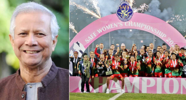 নেপালকে ২-১ গোলে হারিয়ে নারী সাফ চ্যাম্পিয়নশীপে টানা দ্বিতীয়বার শিরোপা জিতেছে বাংলাদেশ। নারী দলের এই সাফল্যে অভিনন্দন জানিয়েছেন অন্তর্বর্তী সরকারের প্রধান উপদেষ্টা ড. মুহাম্মদ ইউনূস।