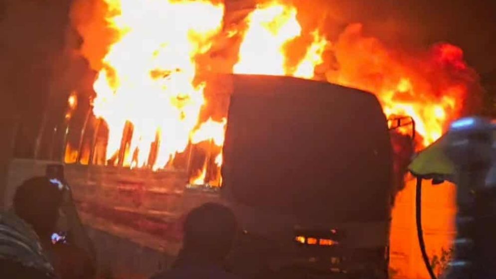 রাজধানীর পুরান ঢাকার সূত্রাপুর ফায়ার সার্ভিসের গেটের সামনে পার্কিং করা একটি বাসে আগুন দিয়েছে দুর্বৃত্তরা।