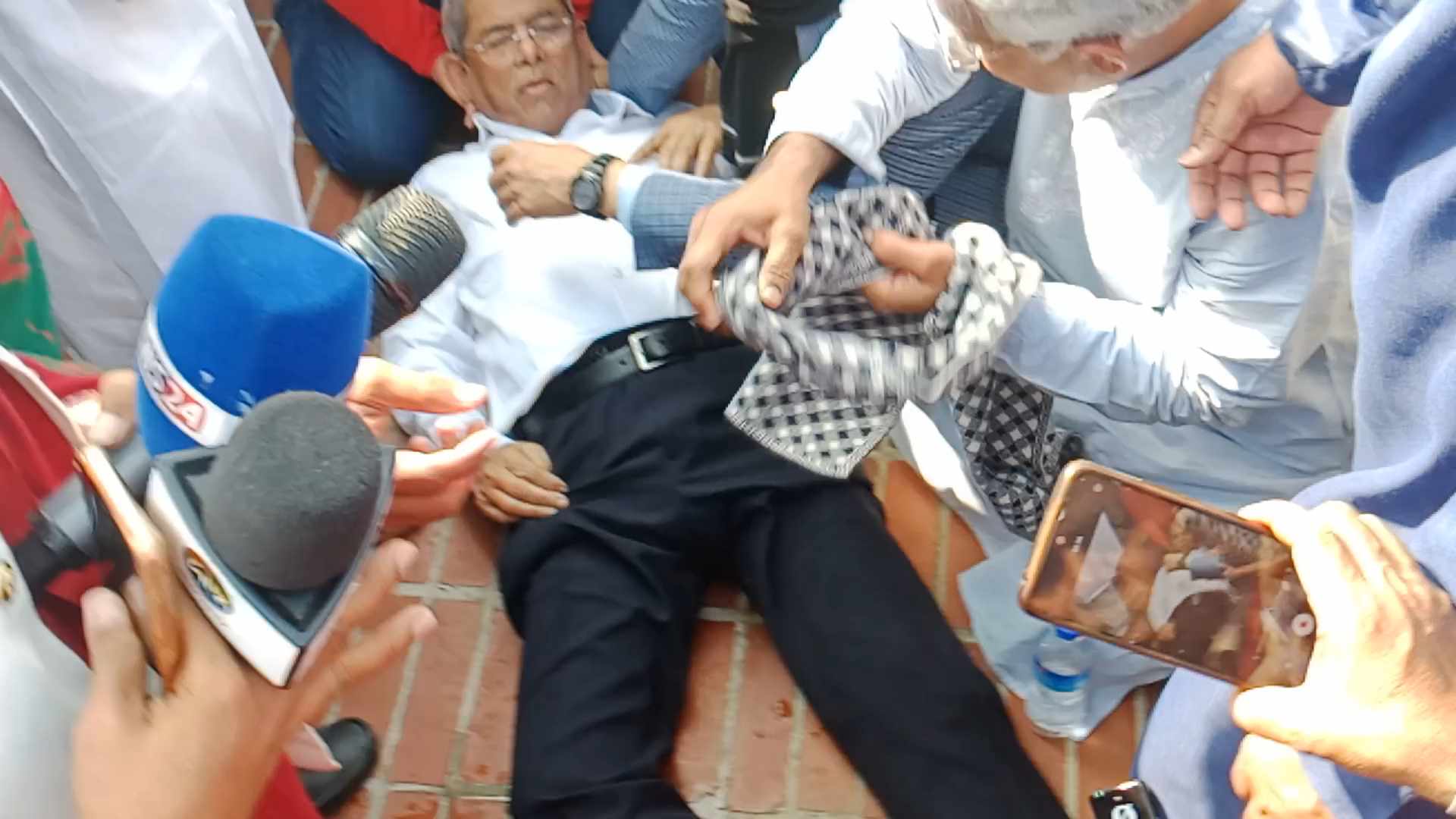 পরে সাংবাদিকদের সঙ্গে কথা বলতে এসে মির্জা ফখরুল প্রথমে অসুস্থবোধ করেন। তখন তিনি জাতীয় স্মৃতিসৌধের ফ্লোরে বসে পড়েন। এ সময় তার মাথায় পানি ঢালেন বিএনপির নেতাকর্মীরা। এরপর হঠাৎ অচেতন হয়ে জাতীয় স্মৃতিসৌধের ফ্লোরে শুয়ে পড়েন। তাৎক্ষণিকভাবে বিএনপির নেতাকর্মীরা তাকে ধরাধরি করে দ্রুত সাভার সিএমএইচ হাসপাতালে নিয়ে যান।