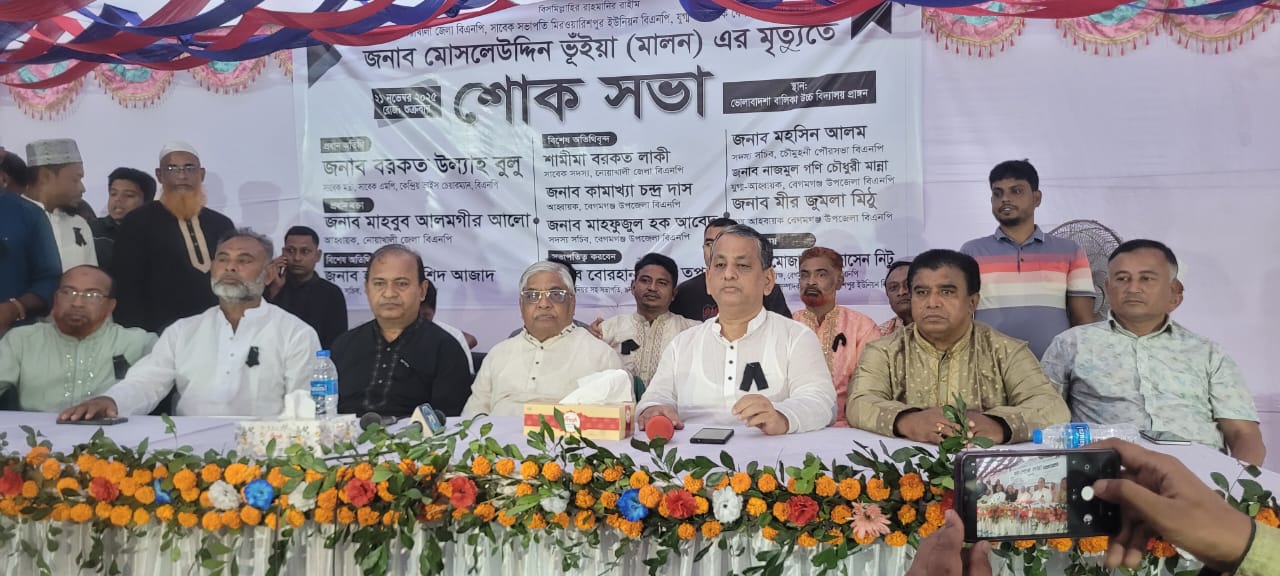 আজ ২১ নভেম্বর ২০২৫ রোজ শুক্রবার বাংলাদেশ জাতীয়তাবাদী দল বেগমগঞ্জ উপজেলার ৯নল মিরওয়ারিশ পুর এর উদ্যোগে ভোলাবাদশা স্কুল মাঠে ইউনিয়ন বিএনপির সভাপতি জনাব মোসলেহ উদ্দিন ভুঁইয়া মালন এর মৃত্যু পরবর্তী শোকসভার আয়োজন করে। উক্ত শোকসভায় প্রধান অতিথি হিসেবে উপস্থিত ছিলেন বাংলাদেশ জাতীয়তাবাদী দলের কেন্দ্রীয় ভাইস চেয়ারম্যান নোয়াখালী ৩ আসনের বিএনপি মনোনীত প্রার্থী জনাব বরকত উল্লাহ বুলু। বিশেষ অতিথি হিসেবে উপস্থিত ছিলেন বেগমগঞ্জ উপজেলা বিএনপির আহ্বায়ক জনাব কামাখ্যা চন্দ্র দাস, বেগমগঞ্জ উপজেলা বিএনপির সদস্য সচিব জনাব মাহফুজুল হক আবেদ, চৌমুহনী পৌর বিএনপির সদস্য সচিব জনাব মহসিন আলম সহ উপজেলা বিএনপি, আলাইয়ারপুর, দূর্গাপুর, কাদিরপুর ইউনিয়ন বিএনপির সাবেক ও বর্তমান নেতৃবৃন্দ। এছাড়াও উপজেলা ও ইউনিয়ন যুবদল, স্বেচ্ছাসেবক দল, ছাত্রদল, শ্রমিকদলের নেতৃবৃন্দ। শোকসভায় বক্তাগন জনাব মোসলেহ উদ্দিন ভুঁইয়া মালন এর দীর্ঘ রাজনৈতিক জীবনের বিভিন্ন সময়ের ত্যাগ ও কড়মকান্ডের বিষয় গুলো আলোকপাত করেন।