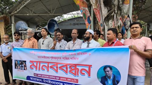 সাংবাদিক আসাদুজ্জামান তুহিন হত্যার প্রতিবাদে চাঁপাইনবাবগঞ্জে মানববন্ধন অনুষ্ঠিত