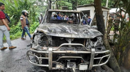 গোপালগঞ্জে পুলিশের গাড়িতে আগুন
