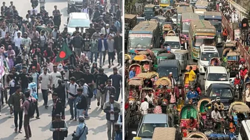 সাত কলেজের শিক্ষার্থীদের সায়েন্স ল্যাব মোড় অবরোধ, তীব্র যানজট