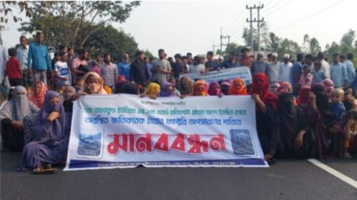 সীতাকুণ্ডে টায়ার ফ্যাক্টরি অপসারনের দাবিতে মানবন্ধন