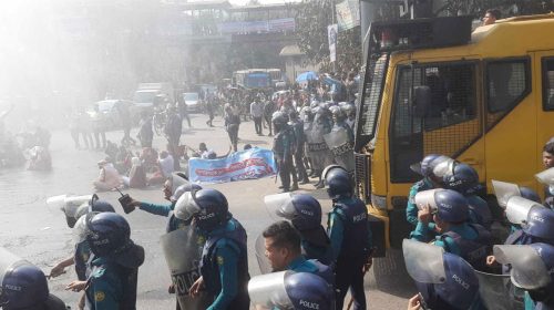 শাহবাগে আন্দোলনরত শিক্ষকদের ওপর পুলিশের লাঠিচার্জ