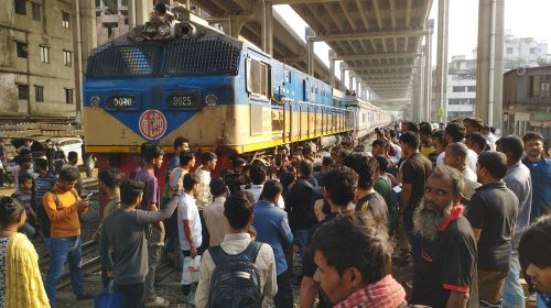 মহাখালীতে রেলপথ অবরোধ করলেন তিতুমীর শিক্ষার্থীরা