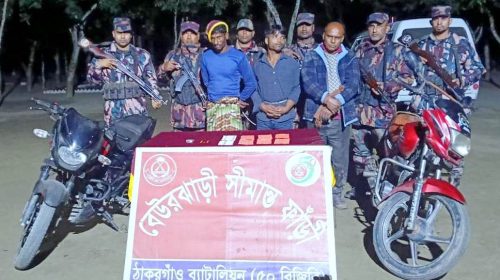 ঠাকুরগাঁও রাণীশংকৈল প্রতিনিধি আব্দুর রউফ ঠাকুরগাঁওয়ে বর্ডার গার্ড বাংলাদেশ (৫০ বিজিবি)’র মাদক বিরোধী অভিযানে মাদকদ্রব্য, বিপুল সংখ্যক নিষিদ্ধ নেশাজাতক ট্যাবলেট ও চোরাই মটরসাইকেল সহ ৩ মাদক ব্যবসায়ী আটক হয়েছে। গোয়েন্দা…