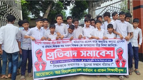 উল্লাপাড়া(সিরাজগঞ্জ) সংবাদদাতাঃ সিরাজগঞ্জের সলঙ্গা থানার রামকৃষ্ণপুর ইউনিয়নের উনুখাঁ পাগলাপীর উচ্চ বিদ্যালয়ে প্রধান শিক্ষককে লাঞ্ছিত ও শিক্ষকদের অপমানের ঘটনার প্রতিবাদে বিদ্যালয় প্রাঙ্গণে এক প্রতিবাদ সমাবেশ অনুষ্ঠিত হয়েছে। বৃহস্পতিবার (৩০ অক্টোবর) দুপুরে…
