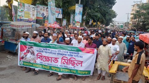 রবিউল আলম, উল্লাপাড়া (সিরাজগঞ্জ) সংবাদদাতা : ২০০৬ সালের ২৮ অক্টোবর রাজধানী ঢাকায় বাংলাদেশ জামায়াতে ইসলামীর সমাবেশে সংঘটিত হত্যাকাণ্ডের বিচার দাবিতে উল্লাপাড়ায় বিক্ষোভ মিছিল ও সমাবেশ অনুষ্ঠিত হয়েছে। মঙ্গলবার (২৮ অক্টোবর)…