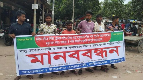 আহমেদ ইসমাম ঠাকুরগাঁও প্রতিনিধি ঠাকুরগাঁওয়ের রাণীশংকৈল কুলিক নদীতে ড্রেজার দিয়ে বালু উত্তোলনের গর্তে পড়ে শিশু নিহতের ঘটনায় এক মানববন্ধন অনুষ্ঠিত হয়েছে। বুধবার দুপুরে উপজেলা পরিষদের সামনেএ মানববন্ধন অনুষ্ঠিন হয়। অভিযোগ…