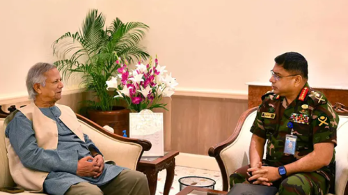 সত্য সমাচার ডিজিটাল ১০ নভেম্বর ২০২৪ অন্তর্বর্তীকালীন সরকারের প্রধান উপদেষ্টা প্রফেসর ড. মুহাম্মদ ইউনূসের সঙ্গে সেনাবাহিনীর প্রধান জেনারেল ওয়াকার-উজ-জামান সাক্ষাৎ করেছেন। রোববার প্রধান উপদেষ্টার তেজগাঁও কার্যালয়ে এ সাক্ষাৎ করেন তিনি।…